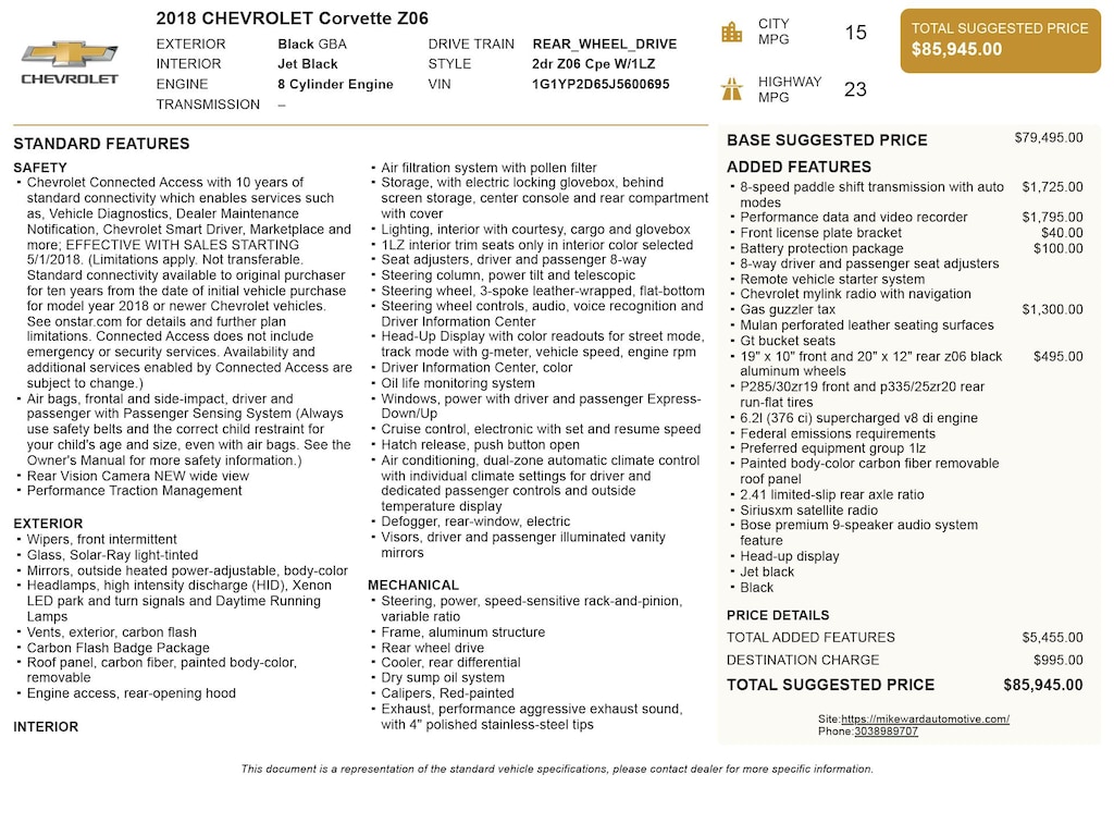 - Fuel economy combined: 18mpg